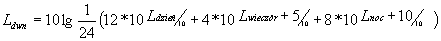 w dB, na wysokości 4 m przy elewacji najbardziej narażonej na działanie hałasu: