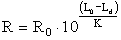 od ulicy większym niż dopuszczalny: gdzie: Lx - długość odcinka ulicy w metrach, R - zasięg oddziaływania hałasu wyliczony ze wzoru: gdzie: R0 - odległość punktu odniesienia od