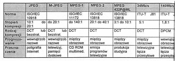 ogramowego i strumienia przesyłowego MPEG-2, a) kodowanie, b)dekodowanie.Zestawienie porównawcze systemów kompresji wykorzystywanych dla telewizji programowej pokazuje poniższa tabela:
